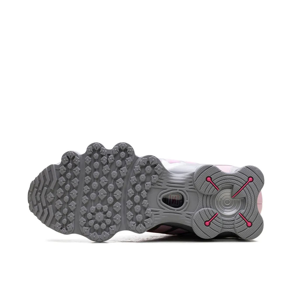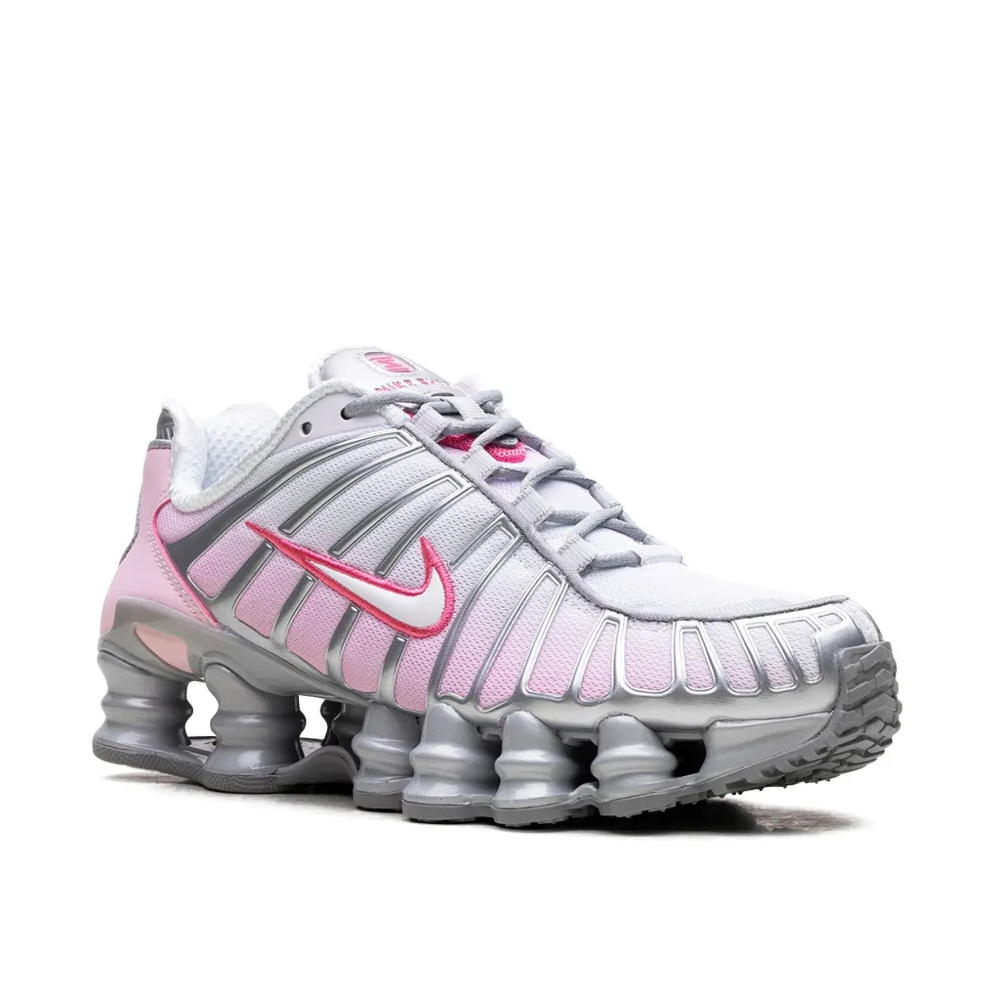 The Nike Shox TL “Metallic Platinum/Pink Foam/White/Pinksicle” reimagines the iconic Shox silhouette with vibrant, multi-tone styling. Featuring a mix of metallic platinum, soft pink foam, crisp white, and pops of pinksicle, the leather and synthetic upper creates a visually dynamic look. The signature Shox columns in the midsole provide responsive cushioning and impact protection, while the rubber outsole delivers reliable traction. Perfect for casual wear or streetwear styling, this edition balances retro inspiration with playful, modern design cues, making it a statement sneaker for bold fashion enthusiasts.